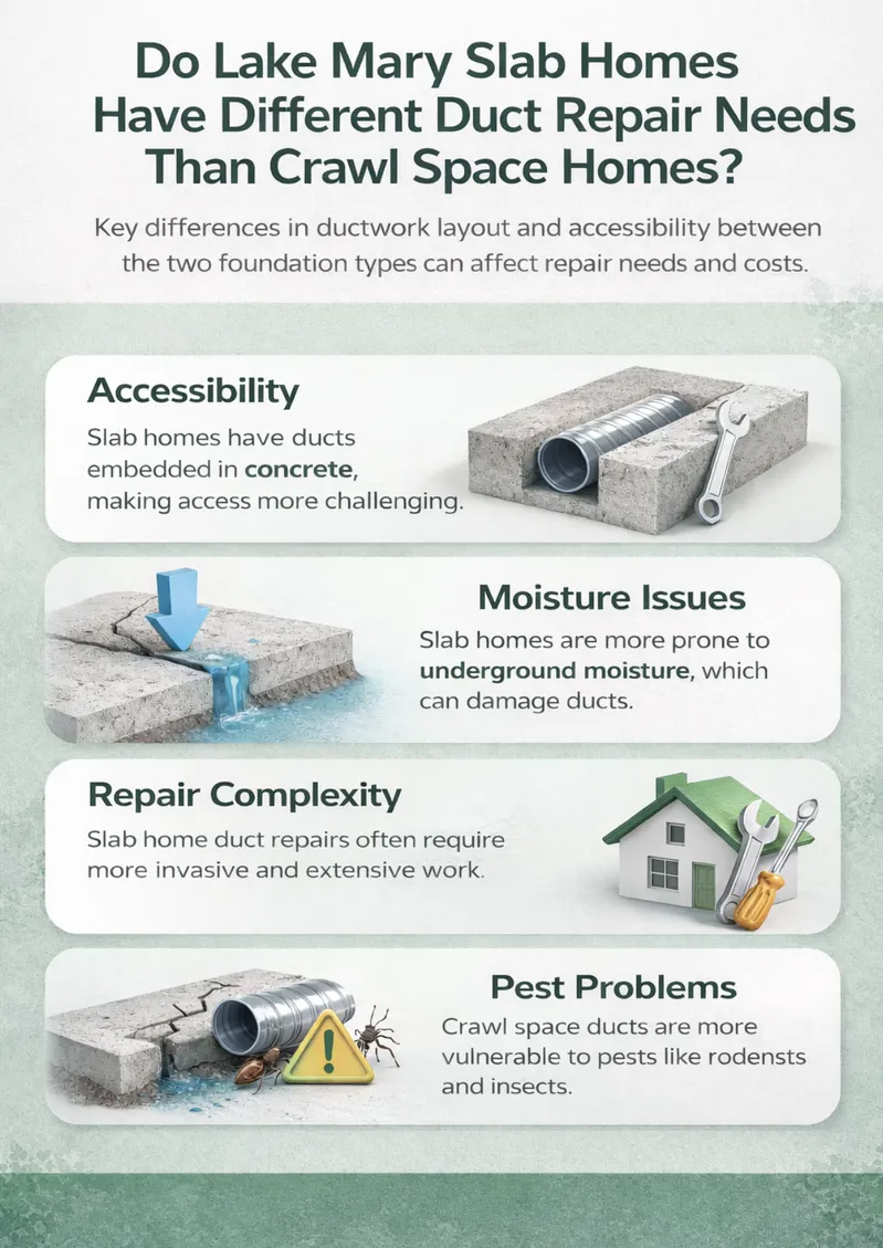 Do Lake Mary Slab Homes Have Different Duct Repair Needs Than Crawl Space Homes?